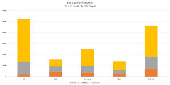 Early intervention is likely to have a significant impact on healthcare costs, as well as societal impact; several studies showed the impact of social healthcare burden and economic costs and quality of life is severe in the later stages of the disease, when symptoms are at their most severe, necessitating more healthcare services or caregiver support [34,35,48,49]. Motor difficulties (motor fluctuations, dyskinesias, and dystonia, which manifests as uncontrollable and sometimes painful muscular spasms) have been recognized as variables contributing to the rise in PD-related expenditures. Social, healthcare burden, and economic costs impact quality of life in patients with advanced Parkinson’s disease (APD) [48,49,50].