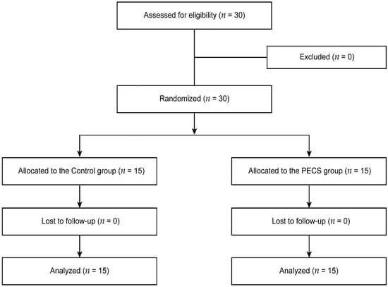 A total of 30 patients were evaluated for eligibility and were randomly assigned into two groups. All patients completed the study and were included in the final analysis (Figure 1).