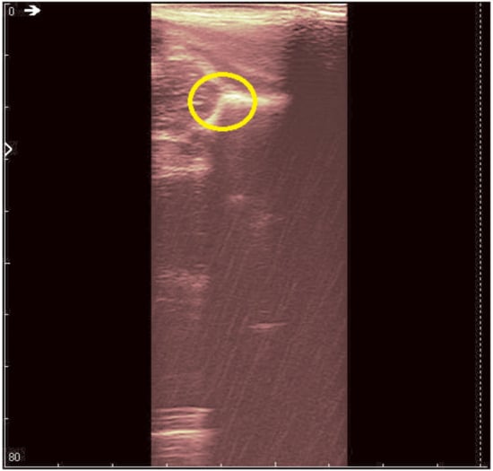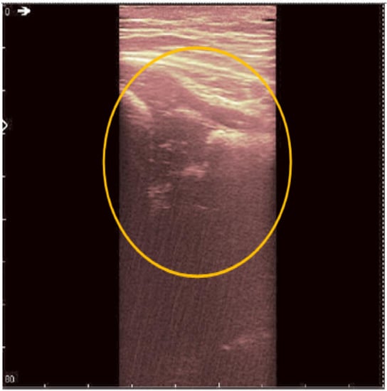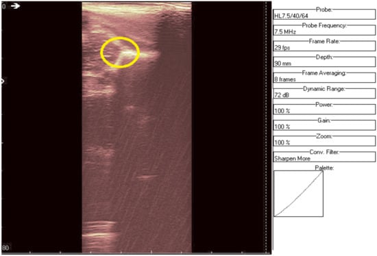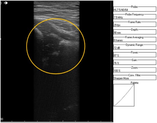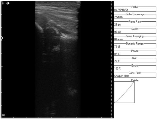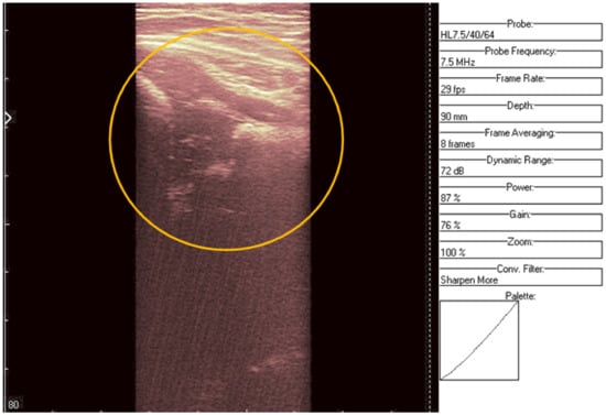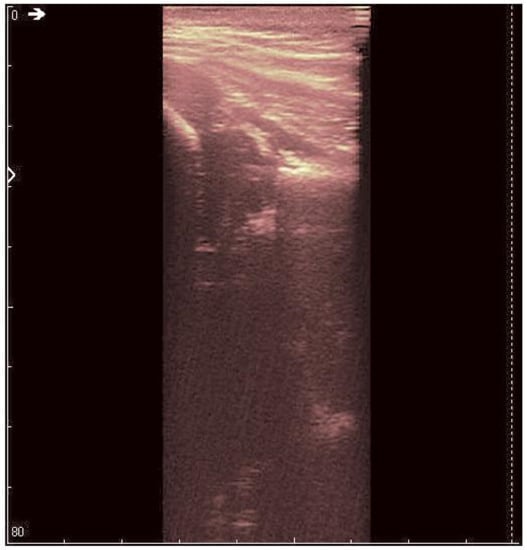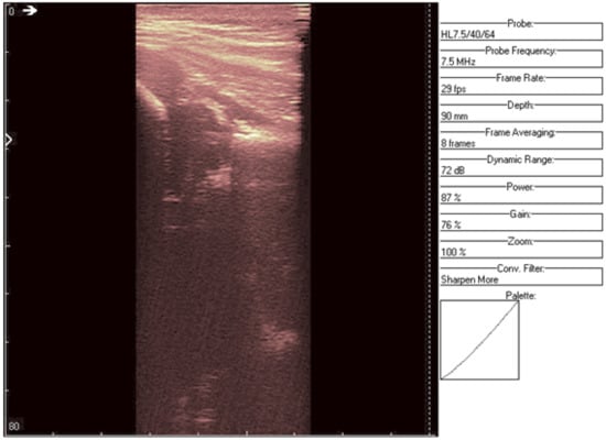 Figure 11)) was taken of a male patient with a sample frequency of 7.5 MHz and a frame rate of 29 fps. The parameters are same as in the previous two cases, yet the image of the acetabulum is hardly visible.
