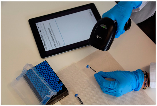 Second module of EULAT eCollect (Sample Information). The application allows barcodes to be scanned using a barcode reader or the camera of the device on which EULAT eCollect is installed (e.g., tablet or smartphone), minimising errors and reducing the time spent documenting sample characteristics during sample processing.