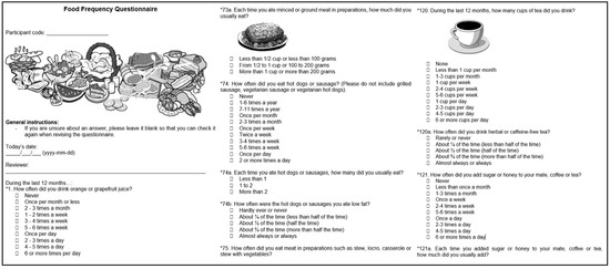 3.7. Features of Module 4: Food-Frequency Questionnaire