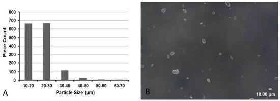 Over 1500 particles were measured in each condition of the IMP/CS dilution with contrast. More than 96.8% of IMP/CS particles were <40 μm in all conditions tested (Figure 4). For the solubility of IMP/CS in formaldehyde, no absorption peaks were observed, demonstrating the insoluble character of the IMP/CS at the concentration tested.