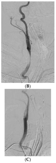 - Kim, J.H.; Kim, Y.J.; Jang, J.S.; Hwang, S.M. Correção endovascular de lesão de artéria subclávia secundária à cateterismo de veia jugular interna: Relato de caso. Braz. J. Anesthesiol. 2019, 69, 413–416. [Google Scholar] [CrossRef] [PubMed]
