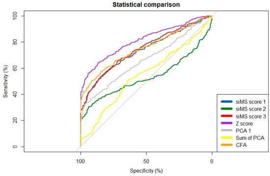 On the other hand, a strong correlation of siMS scores with other continuous scores was observed, being the highest correlation with the z-score, then the CFA, and finally with the first PCA score. These findings are partially consistent with the results obtained by Vukovic et al. [33] in Serbian adolescents, who found that siMS calculated using formulas 1 and 2 had a close correlation with z-scores and the weighted sum of factors of PCA. In addition to these findings, one point to consider is that siMS scores (formulas 1–3) are simple to calculate and could be used for the follow-up of individual patients, and thus potentially useful in the clinical setting, unlike other cMetS scores such as z-scores, PCA and CFA analysis methods [34], which are only applicable to groups of patients, and therefore only useful for calculating cMets, as they are sample-specific methods.