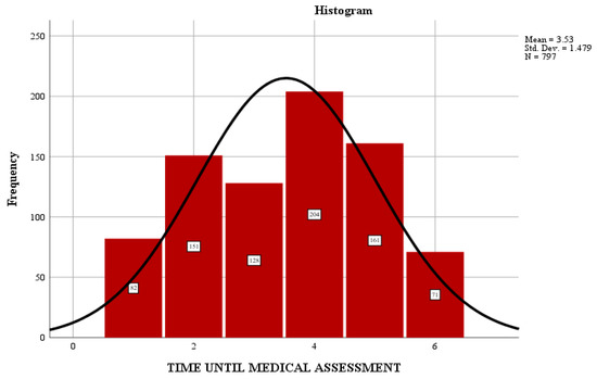 The time elapsed from the time of exposure to the toxicant until the time of addressing the ED directly influences the provision of specific medical care and consequently the patient’s response, hospitalization period and severity of the case. Most patients went to the ED a long time after exposure to the toxic substance, with an average of 3.53 h as shown in Figure 2.