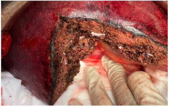 - Ilyas, M.; Bashir, M.; Robbani, I.; Rasool, S.R.; Shera, F.A.; Hamid, I. Sentinel clot sign in hemoperitoneum. Abdom. Imaging 2019, 44, 1955–1956. [Google Scholar] [CrossRef]