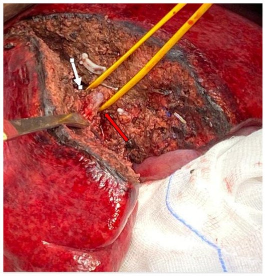- Thompson, C.M.; Saad, N.E.; Quazi, R.R.; Darcy, M.D.; Picus, D.D.; Menias, C.O. Management of Iatrogenic Bile Duct Injuries: Role of the Interventional Radiologist. Radiographics 2013, 33, 117–134. [Google Scholar] [CrossRef]