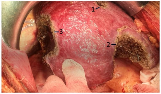 - Kato, H.; Asano, Y.; Ito, M.; Arakawa, S.; Shimura, M.; Koike, D.; Ochi, T.; Yasuoka, H.; Kawai, T.; Higashiguchi, T.; et al. A case of Vp4 hepatocellular carcinoma with tumor thrombosis extending into the confluence of the splenic/portal vein achieved a good prognosis with emergent hepatectomy and postoperative adjuvant therapy with lenvatinib. World J. Surg. Oncol. 2022, 20, 278. [Google Scholar] [CrossRef] [PubMed]