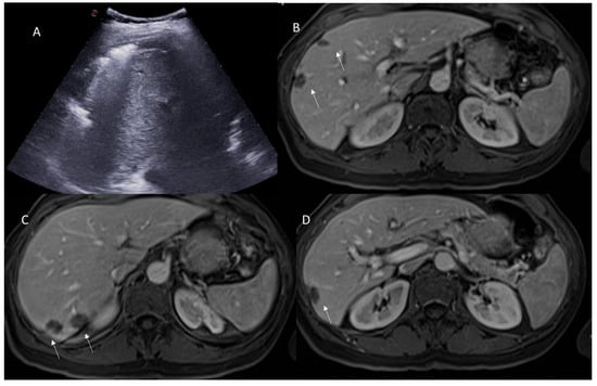 - Granata, V.; Fusco, R.; Catalano, O.; Avallone, A.; Palaia, R.; Botti, G.; Tatangelo, F.; Granata, F.; Cascella, M.; Izzo, F.; et al. Diagnostic accuracy of magnetic resonance, computed tomography and contrast enhanced ultrasound in radiological mul-timodality assessment of peribiliary liver metastases. PLoS ONE 2017, 12, e0179951. [Google Scholar] [CrossRef]