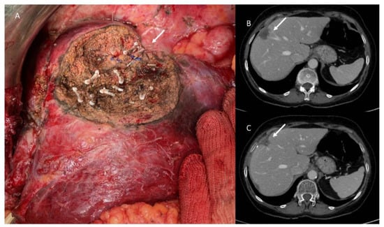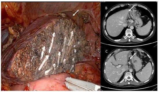 - Cutolo, C.; De Muzio, F.; Fusco, R.; Simonetti, I.; Belli, A.; Patrone, R.; Grassi, F.; Dell’Aversana, F.; Pilone, V.; Petrillo, A.; et al. Imaging Features of Post Main Hepatectomy Complications: The Radiologist Challenging. Diagnostics 2022, 12, 1323. [Google Scholar] [CrossRef] [PubMed]