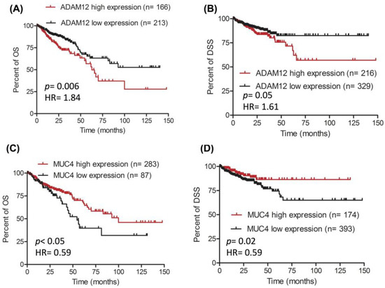 3.9. Detection of ADAM12 and MUC4 Isoforms at the Protein Level
