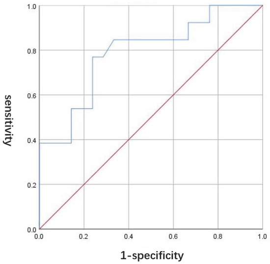 The ROC curve of the baseline SUA was drawn according to the decreased levels of serum uric acid ≥ 10% after 12 weeks of dapagliflozin, and we found that baseline SUA ≥ 314.5 μmol/L had a good accuracy in identifying T2DM patients who may have experienced uric-acid-lowering effects after dapagliflozin therapy, with a sensitivity of 76.9% and a specificity of 76.2% (Figure 3).