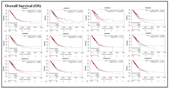 2.3. Kaplan-Meier (KM) Plotter Survival Assessment of FKBP Gene Family Members