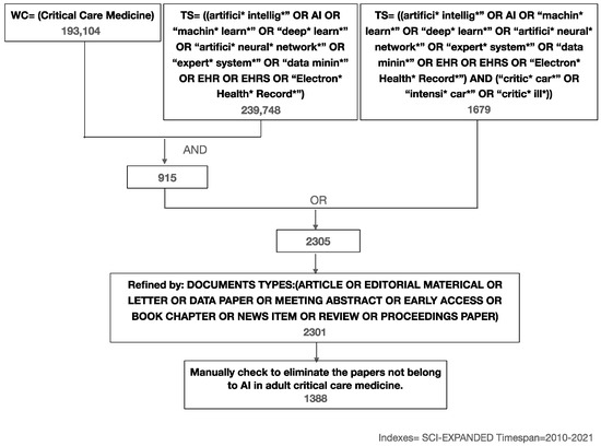To clarify the current status of AI applied in the research of adult CCM, all relevant studies published between January 2010 and June 2021 were retrieved from the Science Citation Index Expanded database in Web of Science (Clarivate). After a preliminary screening by searching titles, abstracts, and keywords, such as “artificial intelligence,” “machine learning,” “deep learning,” “neural network,” “expert system,” “data mining,” “electronic hospital record,” and their variants, all studies were manually checked to ensure compliance with topic suitability by two different critical care specialists. In the event of discordance between the two reviewers, a third reviewer independently evaluated the paper.