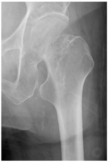 - Garden, R.S. Malreduction and avascular necrosis in subcapital fractures of the femur. J. Bone Jt. Surg. Br. 1971, 53, 183–197. [Google Scholar] [CrossRef]