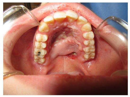 Palatine fistulae can also occur following firearm accidents; however, they are poorly described in the literature, probably due to the high mortality rate [,,,,].