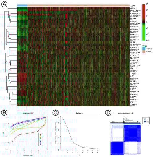 2.3. Bioinformatic Analysis of the Two Pyroptosis-Related Clusters