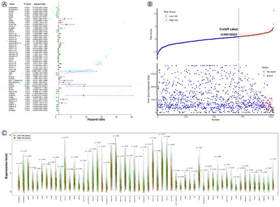 3.5. 56-Gene Signature Associated with Prognosis of Patients with BC