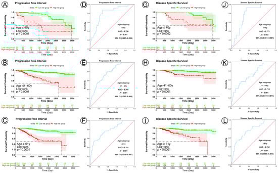 | Regrouping Factors | Subgroup | Sample Size | Kaplan–Meier | ROC | Kaplan–Meier | ROC | ||||