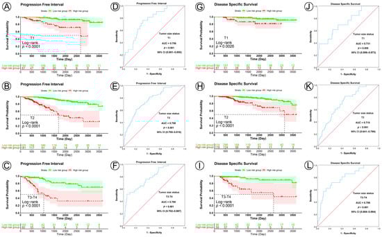 | T3–T4 | 163 | <0.001 | 0.785 | 0.702–0.867 | <0.001 | <0.001 | 0.789 | 0.648–0.894 | <0.001 | |