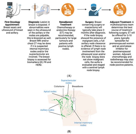 - American Cancer Society. Lymph Node Surgery for Breast Cancer. 2023. Available online: https://www.cancer.org/cancer/breast-cancer/treatment/surgery-for-breast-cancer/lymph-node-surgery-for-breast-cancer.html (accessed on 17 March 2023).