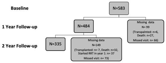 The combined outcome of initiating renal replacement therapy or death was also evaluated.