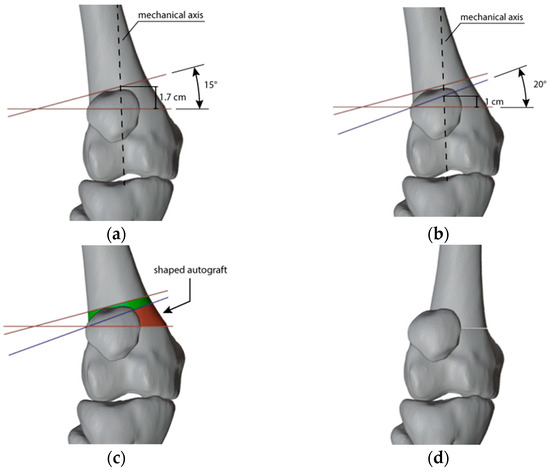 - Alessandri, G.; Frizziero, L.; Santi, G.M.; Liverani, A.; Dallari, D.; Vivarelli, L.; Di Gennaro, G.L.; Antonioli, D.; Menozzi, G.C.; Depaoli, A.; et al. Virtual Surgical Planning, 3D-Printing and Customized Bone Allograft for Acute Correction of Severe Genu Varum in Children. J. Pers. Med. 2022, 12, 2051. [Google Scholar] [CrossRef]