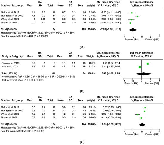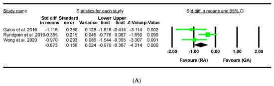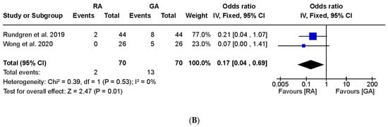 | RA with infraclavicular approach | 2 | −0.13; −1.8–1.6 | I2 = 93% p = 0.01 |