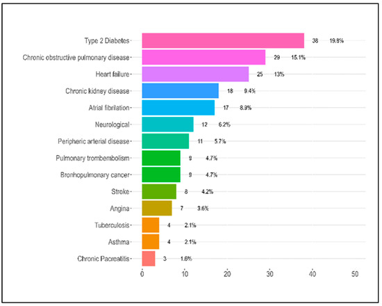 | 6–8 comorbidities | 4.0 (12.1%) | 7.0 (11.3%) | 10.0 (10.3%) | 21.0 (10.9%) |