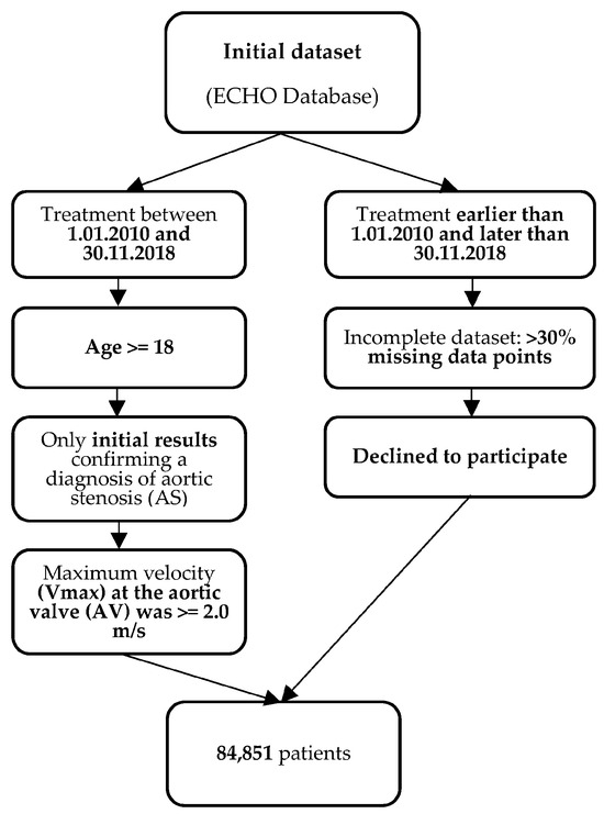 - For patients who underwent multiple ECHO examinations during this period, only the initial results confirming a diagnosis of aortic stenosis (AS) were considered for the study. ECHO examinations were primarily conducted in the following clinical scenarios: suspected cardiac etiology based on symptoms, signs, or other tests, as well as evaluation and follow-up of individuals with cardiovascular disease;