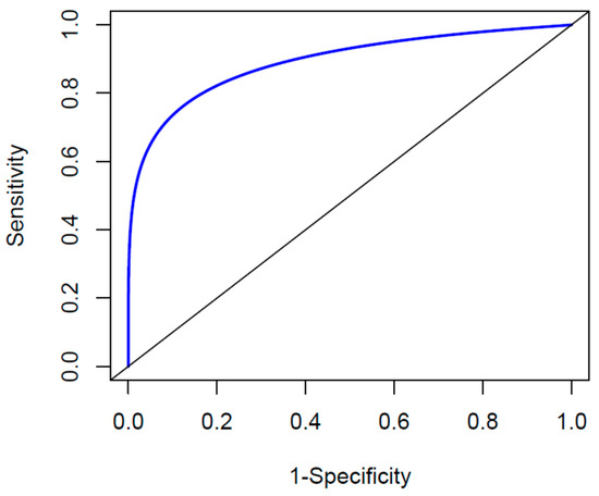 A number of spectral indicators were selected from the absorbance spectra based on their biological significance in this specific study, and also considering those commonly identified in the FTIR spectra of biofluids [25,28,29,30,31]. The considered spectral biomarkers are listed in Table 1, and are used to construct the final linear predictor for distinguishing between healthy controls and patients. To this end, a generalized linear model (see, for example, the data analysis of Agresti [32]) is considered to relate the p spectral biomarkers to the probability of having the disease. In particular, a logit link function is considered, as the response is a binary variable, and the resulting logistic regression model can be expressed as follows: