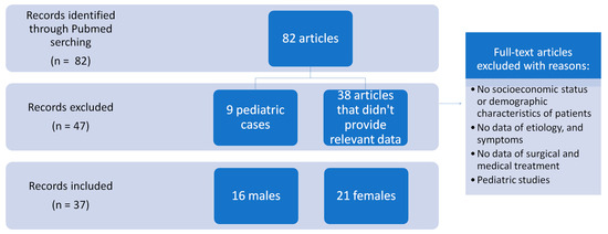 Upon careful evaluation, it was determined that 9 articles focused on pediatric cases, rendering them unsuitable for the current investigation. Additionally, 28 articles explored different aspects which deviated from the specific objective of this study. Moreover, 10 articles failed to provide any relevant data, thereby disqualifying them from inclusion in the analysis.