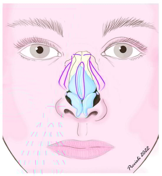 - Gentile, P.; Bottini, D.J.; Nicoli, F.; Cervelli, V. Open-tip approach: Evolutions in rhinoplasty. J. Craniofacial Surg. 2008, 19, 1323–1329. [Google Scholar] [CrossRef]
