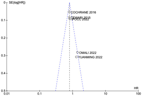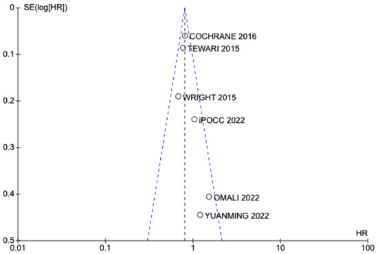 Funnel plot studies included OS [13,24,25,26,27,28].
