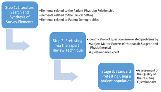 The experts were divided into two groups: the survey and questionnaire experts and the substantive or subject-matter experts [25]. The first group was made up of two researchers who are primarily engaged in qualitative research, and the second group was made up of an orthopaedic surgeon and a physiotherapist. All involved experts had many years of academic and research experience.