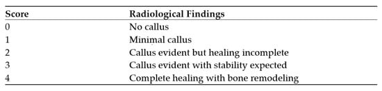 - Gaddi, D.; Gatti, S.D.; Piatti, M.; Poli, A.; De Rosa, L.; Riganti, A.; Zatti, G.; Bigoni, M.; Turati, M. Non-Union Scoring System (NUSS): Is It Enough in Clinical Practice? Indian J. Orthop. 2023, 57, 137–145. [Google Scholar] [CrossRef] [PubMed]
