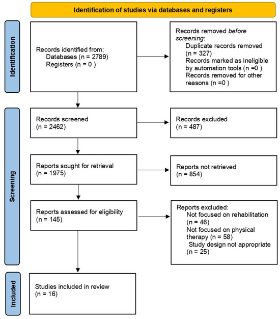 The keywords used were ‘hyaluronic acid’, ‘rehabilitation therapy’, and ‘therapeutic molecule’. Several synonyms were searched for each keyword (i.e., hyaluronan, hyaluronate, physical therapy, therapeutic exercise, physical therapy). The search included the recent updates (2013–2023) related to HA and rehabilitation (including clinical trials as well as in vitro and in vivo studies) independently from their level of evidence (Figure 1).