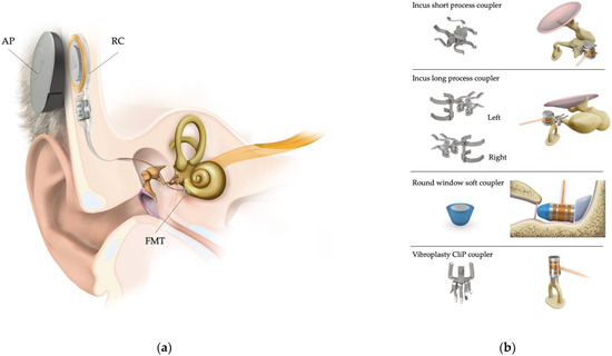 - Kwak, S.H.; Moon, Y.M.; Nam, G.S.; Bae, S.H.; Kim, S.H.; Jung, J.; Choi, J.Y. Clinical Experience of Vibroplasty With Direct Coupling to the Oval Window Without Use of a Coupler. Laryngoscope 2020, 130, e926–e932. [Google Scholar] [CrossRef]