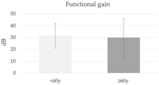 Functional gain one year after Vibrant Soundbridge activation in both age groups.