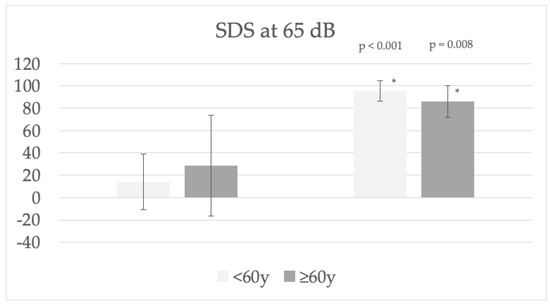 Patients were divided into two age groups: <60 years (<60 y) and ≥60 years (≥60 y). This cut-off was previously established in other studies that evaluated age-related hearing loss [10,11].