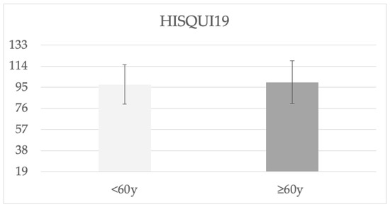 No significant differences were found for the NCIQ and HISQUI19 in both age groups.