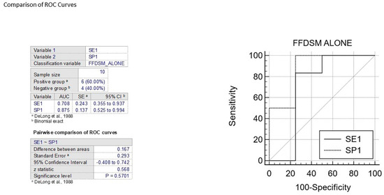 The figure shows the comparison between ROC curves to analyze sensitivity and specificity of FFDM alone [32].