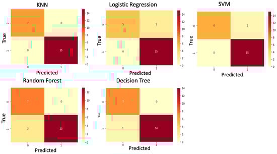 Confusion matrix for all ML models. The confusion matrix was used to compare the different machine learning algorithms.