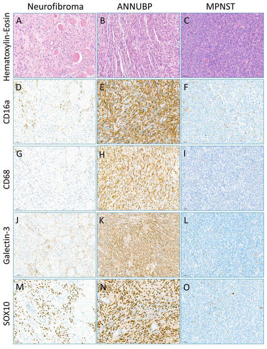 - Higham, C.S.; Dombi, E.; Rogiers, A.; Bhaumik, S.; Pans, S.; Connor, S.E.J.; Miettinen, M.; Sciot, R.; Tirabosco, R.; Brems, H.; et al. The characteristics of 76 atypical neurofibromas as precursors to neurofibromatosis 1 associated malignant peripheral nerve sheath tumors. Neuro Oncol. 2018, 20, 818–825. [Google Scholar] [CrossRef] [PubMed]