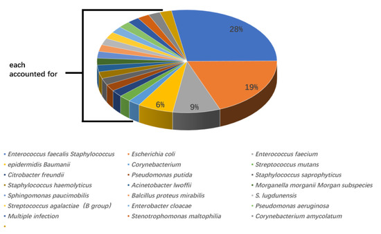The genera and proportions of bacterial strains from patients with positive urine cultures.
