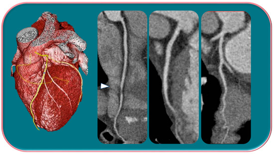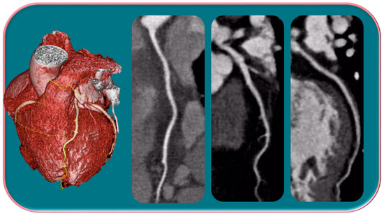 Finally, additional approaches such as fractional flow reserve that allow us a hemodynamic assessment of coronary artery injury, myocardial stress perfusion in CT, and future research exploring techniques such as shear stress, left ventricular mass assessment, and strain, are further implementing the role of CTA, and it is hoped that, within a short time, they can be introduced into daily clinical practice [33,34,35,36,37,38,39].