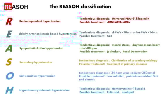 Xu C, Li M, Meng W, Han J, Zhao S, Tang J, Yang H, Maimaitiaili R, Teliewubai J, Yu S, et al. Etiological Diagnosis and Personalized Therapy for Hypertension: A Hypothesis of the REASOH Classification. Journal of Personalized Medicine. 2023; 13(2):261. https://doi.org/10.3390/jpm13020261