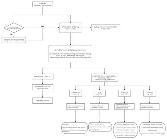 - Viera, A.J.; Neutze, D.M. Diagnosis of secondary hypertension: An age-based approach. Am. Fam. Physician 2010, 82, 1471–1478. [Google Scholar]