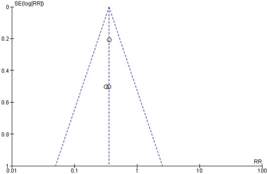 The risk of bias between the studies was to be considered low (I2 = 0%) and through the visual and graphic analysis of the confidence intervals, did not emerge on the meta-analysis. An evaluation of the publication bias was also conducted, and the evaluation was performed through graphical analysis of the symmetry of the funnel plot, which appeared to be symmetric (Figure 3); to minimize the bias, a search was carried out for unpublished material in the gray literature, which also included the presence of conference papers and material that may not have been published due to the lack of significance of the results.