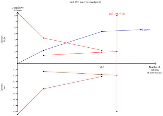 A systematic literature review was made with the TSA being performed on the value as a prognostic biomarker of survival of miR-195 in head and neck carcinomas. To the best of our knowledge, this systematic review represents the first meta-analysis to focus on miR-195 in HNSCC followed by TSA for the analysis of the statistical significance of the results. Three studies were included in this review, with a total of 385 patients recruited; the publication bias was either minimized by including the search on many databases including some of the gray literature and, additionally, the TSA results showed that the results of the meta-analysis had an adequate statistical power.